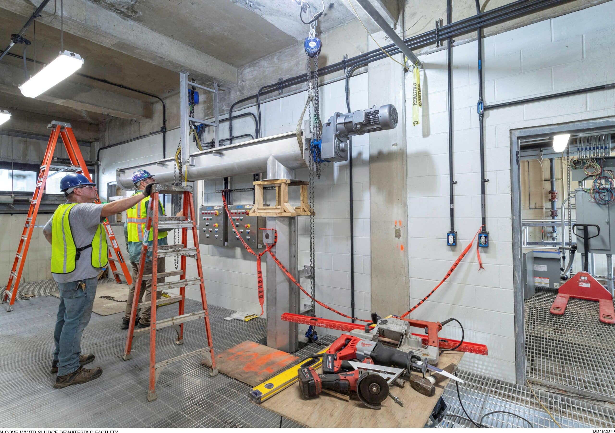 The work to being completed includes two (2) new belt filter presses inside of the existing Dissolved Air Flotation (DAF) Building, a new electric control system, and pump replacement. A new liquid polymer feed system, and sludge conveyors that will discharge to a truck loader to be installed as well.